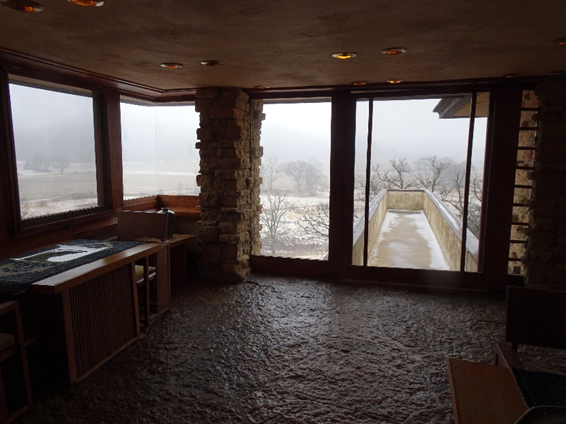 Omdat ik vermoedde dat het wel eens lang zou kunnen duren voordat ik weer naar de VS zou reizen besloot ik een paar dagen eigen tijd te plakken aan dit officiële bezoek. Eén van mijn helden op architectuurgebied is Frank Lloyd Wright. Hij wordt wel als één van de grote drie van de 20e eeuwse architectuur genoemd, naast Le Corbusier en Rem Koolhaas. Op deze rangschikking is misschien veel aan te merken, maar wat zeker is, is dat deze drie veel invloed hebben (gehad), niet alleen door hun gebouwen, maar ook door hun theoretische werk.