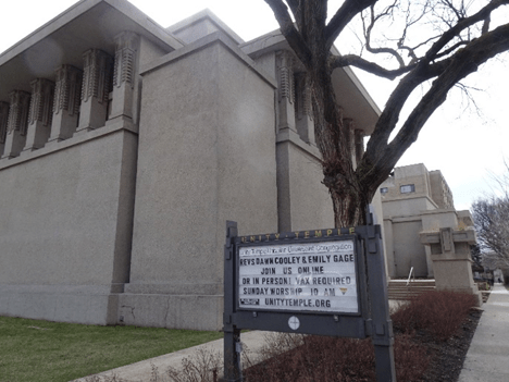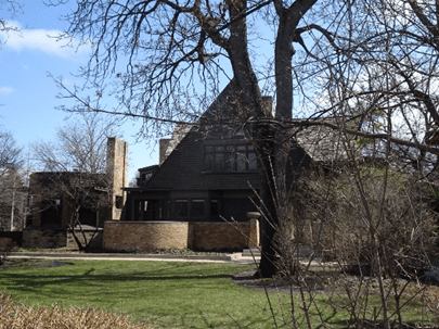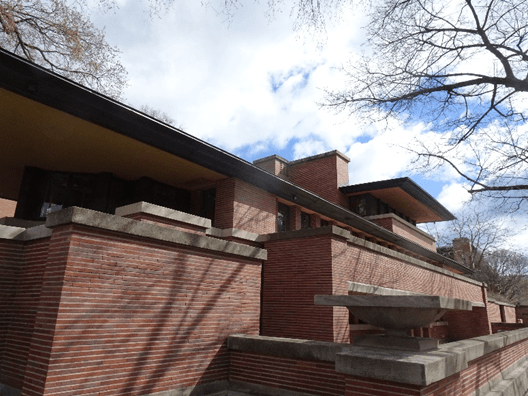 Wat je nu ziet is niet het oorspronkelijke complex. Daarvan brandde hele stukken af in 1904 bij de gruwelijke moordpartij, waarbij FLW’s tweede vrouw, Mamie, haar kinderen en enkele medewerkers van FLW, door de majordomus in een vlaag van waanzin werden afgeslacht.