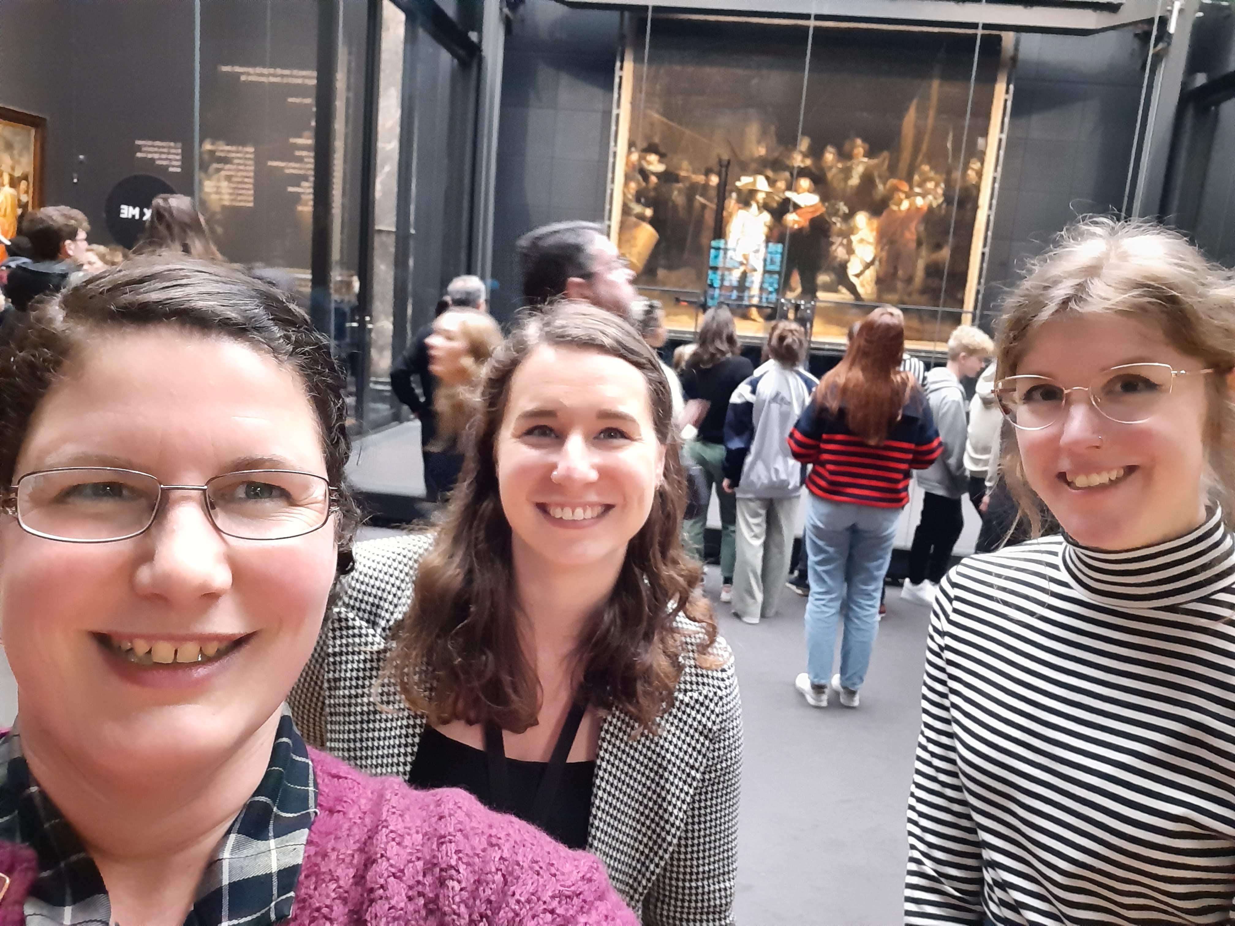 Vlnr: Catharina van Daalen, Vera Hendriks, Lisette Grimmius in het Rijksmuseum Amsterdam